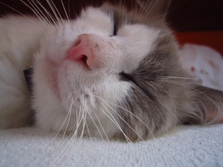 Jsem bílý kocourek plemene ragdoll. Miluju drbání, mazlení se a spaní. Taky mám rád když se vzájemně s Chuckem olizujeme, ale nesnáším když si se mnou chce hrát. Jsem spíš takový kliďas. Nemám PP protože mám na uchu flek. Snžek