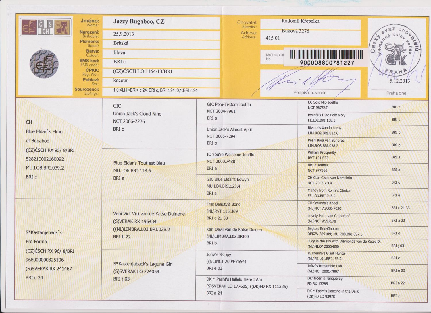| narozen: 25.09.2013 pedigree |