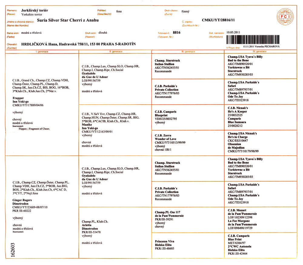 | narozen: 10.05.2011 pedigree |
