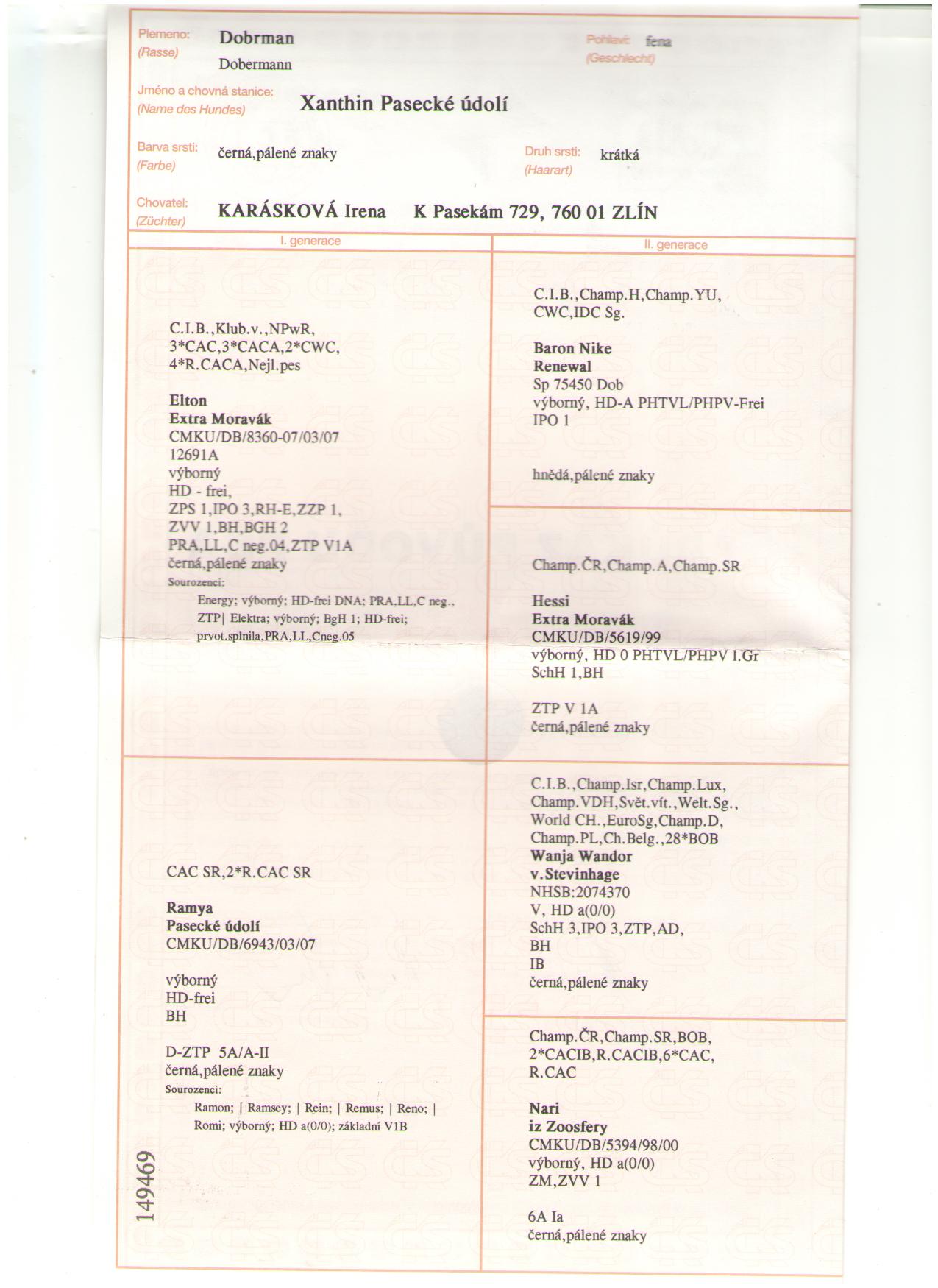 Xanthin Pasecké údolí, je to tříletá skvělá fena, která má rozdělaný šampionat, který chceme letos dokončit. Je po velmi dobrých rodičích tatínek Xanthin je Elton Extra Moravák, je to úžasný pes jak výstavně tak na práci má spousty zkoušek, snad všechny, které existují a plus také speciální záchranářský výcvik. Matka Xanthin je Ramya Pasecké údolí, která je z velmi dobré, zdravé, pracovní a exterierové linie. Xanthin je velmi vyrovnané, klidné a přátelské povahy, bez známek agresivity a velké chuti do práce, pevné kostry, na horní hranici výšky. Je to velmi silná a velká fena jak svou fyzickou stránkou tak svou duší.