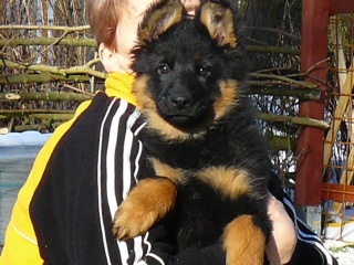 Nejmladší členka naší smečky,pěkný drak a je hodna svého jména.....celá její babička Tasy...ještě si s ní užijeme..je všude ,nikde nesmí chybět...